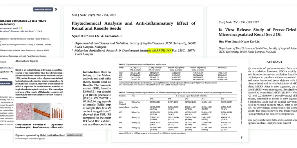 Banyak Kajian Dalam Negara Juga Sahkan Ekstrak Kenaf Mujarab Hilangkan Sakit Radang Akibat Obesiti dan Kolesterol.